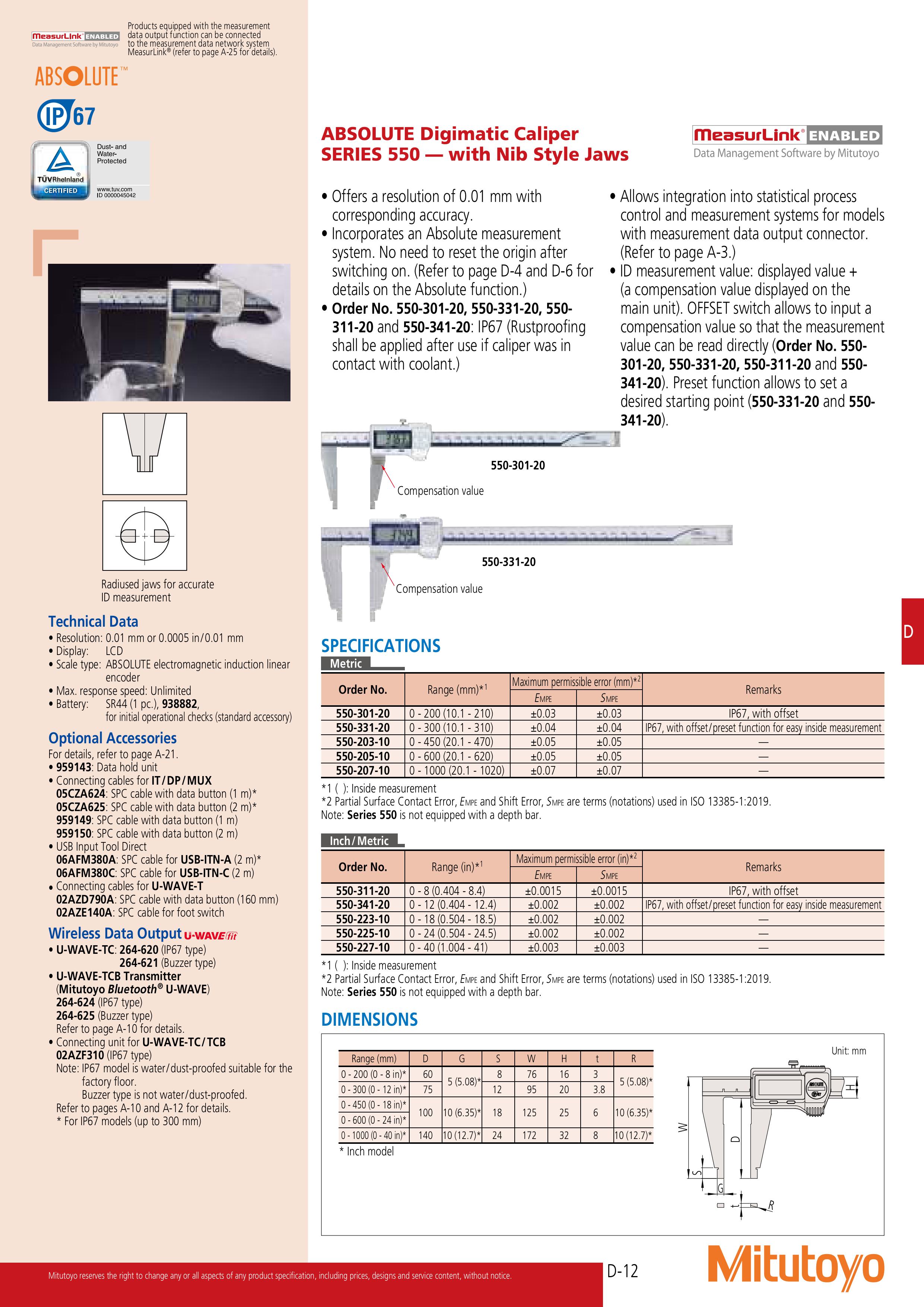 Thước cặp điện tử ABSOLUTE series 550 Mitutoyo